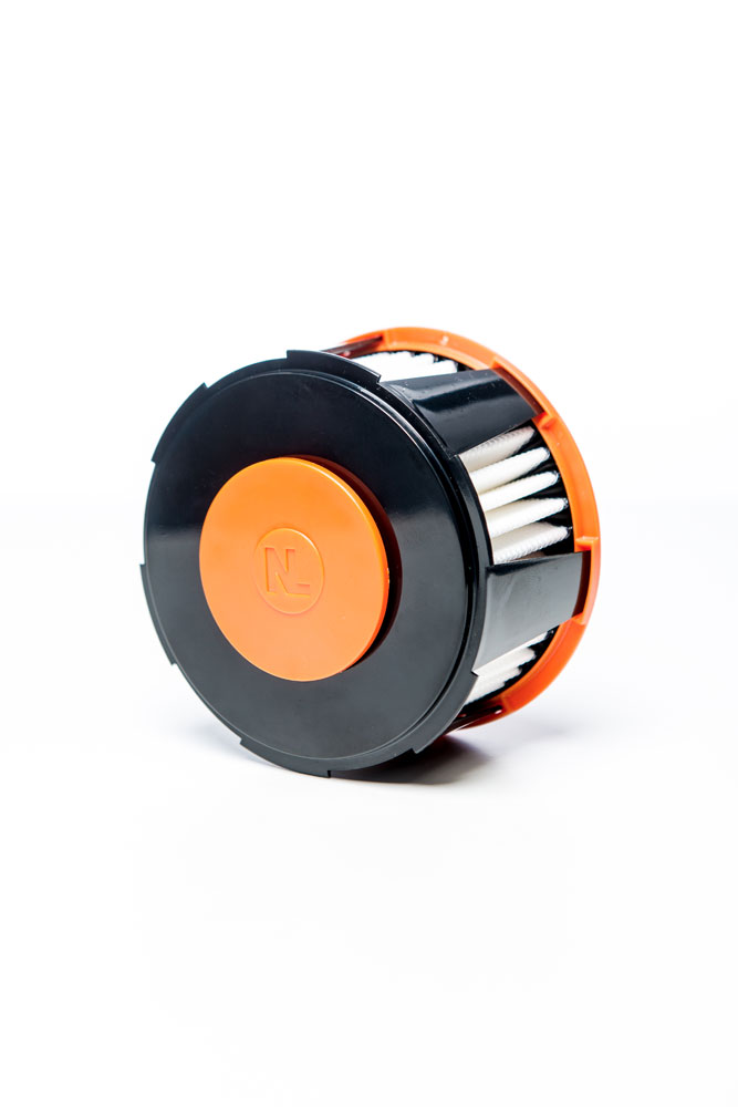 Samotná těsnost na rozhraní pevné části polomasky a filtru zajišťuje silikonový těsnící kroužek, který je ukotven do tělesa filtru. Tento kroužek díky svým vlastnostem, zajišťuje spolehlivé těsnění po celou životnost masky, jelikož nedochází k jeho vymačkávání a ztrátě pružnosti. Samotný kruhový filtr je řešen tak aby vyhovoval široké škále filtračních materiálů. Minimální normativně stanovená plocha filtru 150 cm2 z hlediska prodýchatelnosti, je bezpečně splněna a lze jí i výrazně navýšit zvětšením hustoty skladu filtračního materiálu.